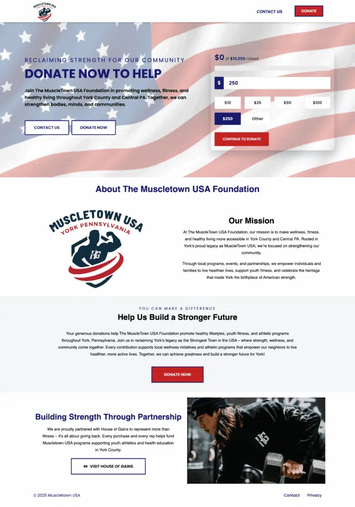 MuscleTown USA is a community-focused foundation promoting wellness, fitness, and healthy living across York County and Central Pennsylvania. With roots in the region’s strength heritage and a mission to support youth fitness and local health programs, the project involved beautifying the nonprofit website and implementing foundational SEO to improve search visibility and donor engagement.
